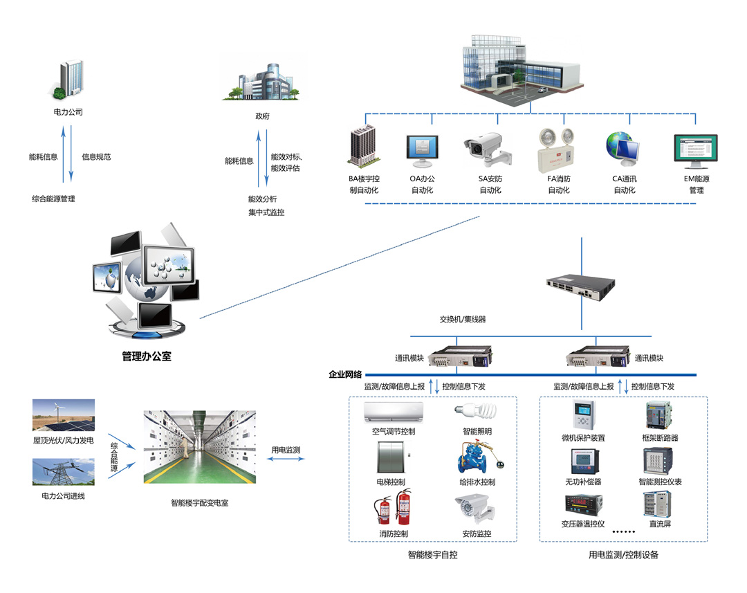 樓宇自控系統(tǒng)是將建筑物或者建筑群內(nèi)的變配電、照明、電梯、空調(diào)、供熱、給排水、消防、安防等眾多分散設備的運行、安全狀況、能源使用以及節(jié)能管理實行集中監(jiān)控、管理和分散控制的建筑物管理與控制系統(tǒng)。能夠減少設備故障,降低維護和運營成本,提高建筑整體運營水平,提供健康、智能、舒適的環(huán)境,達到節(jié)能減排、低碳環(huán)保的目標。