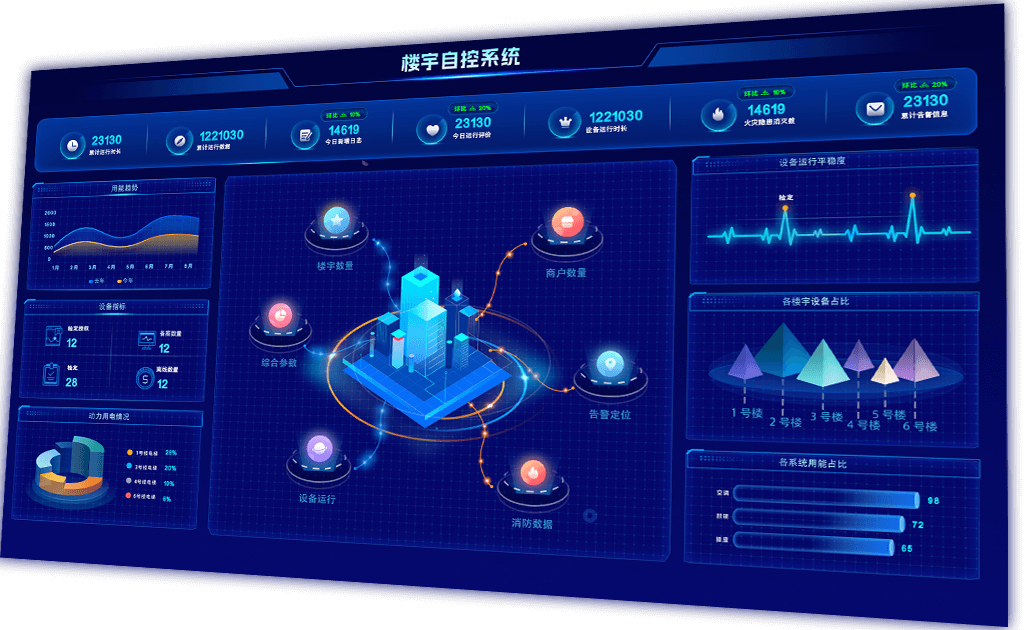 更專業(yè)友好人機交互界面,輔助綜合分析并挖掘建筑各方面優(yōu)化潛力,整合分項信息搭建數(shù)據(jù)中臺,實現(xiàn)智能化統(tǒng)一管理。